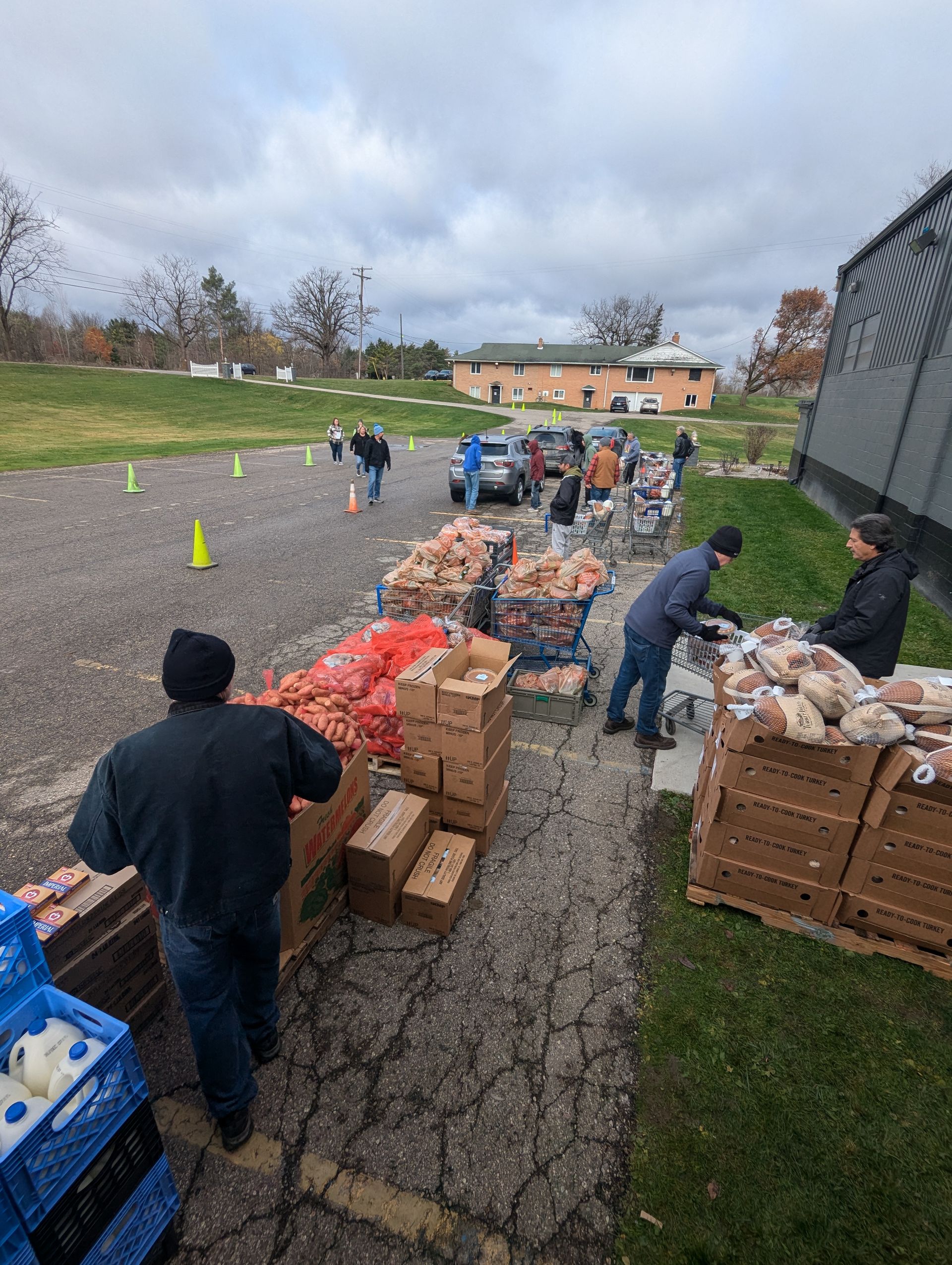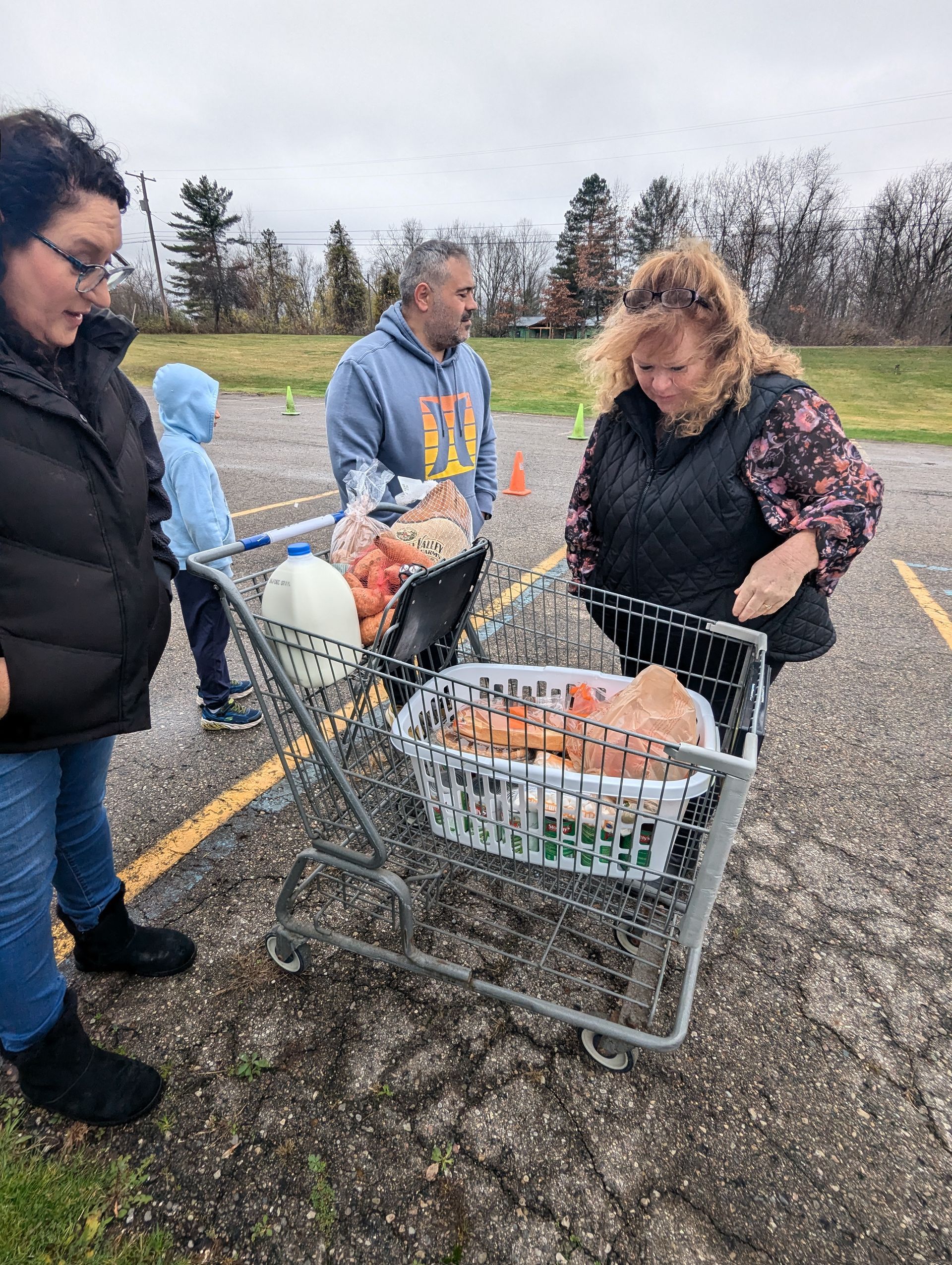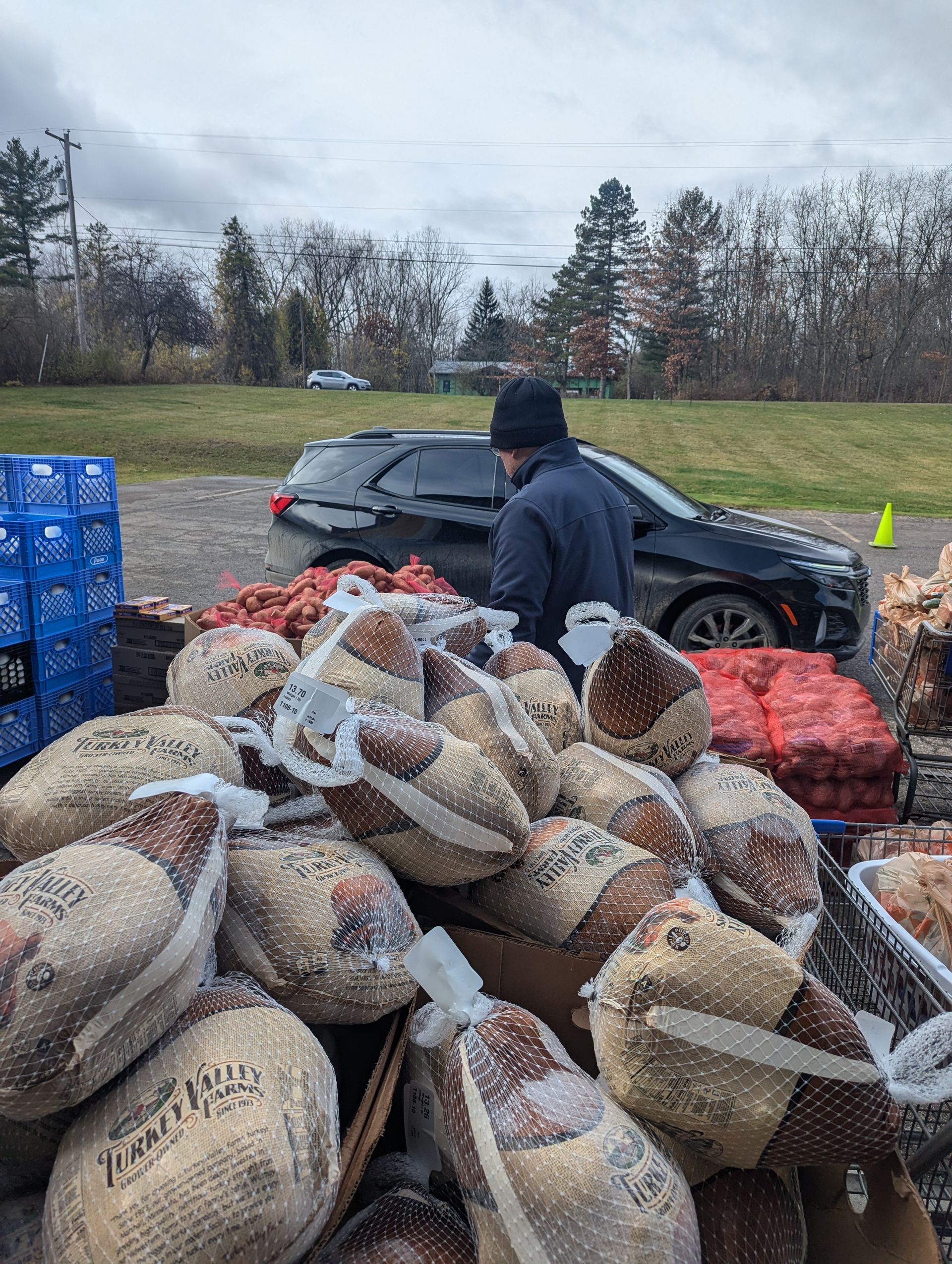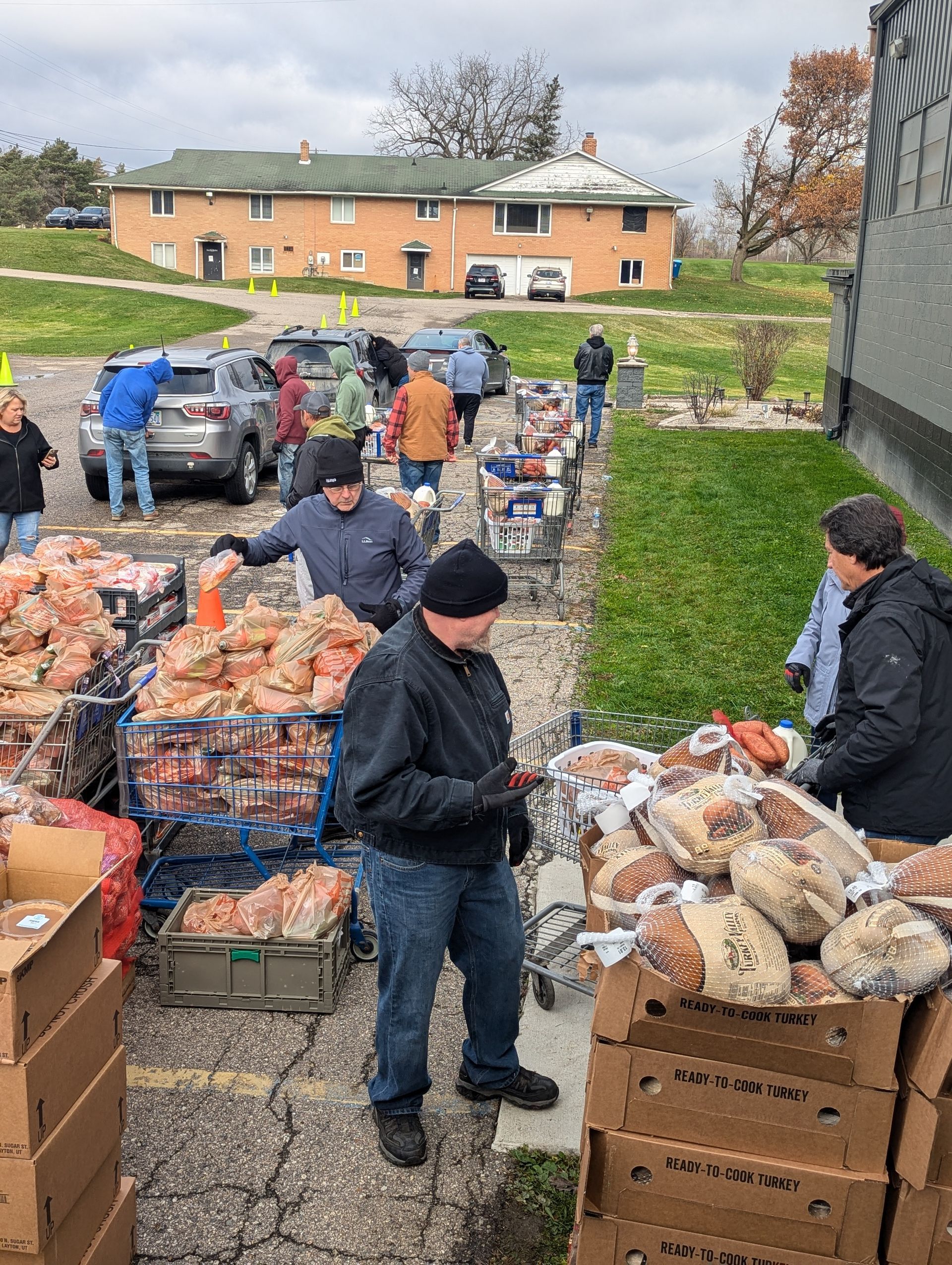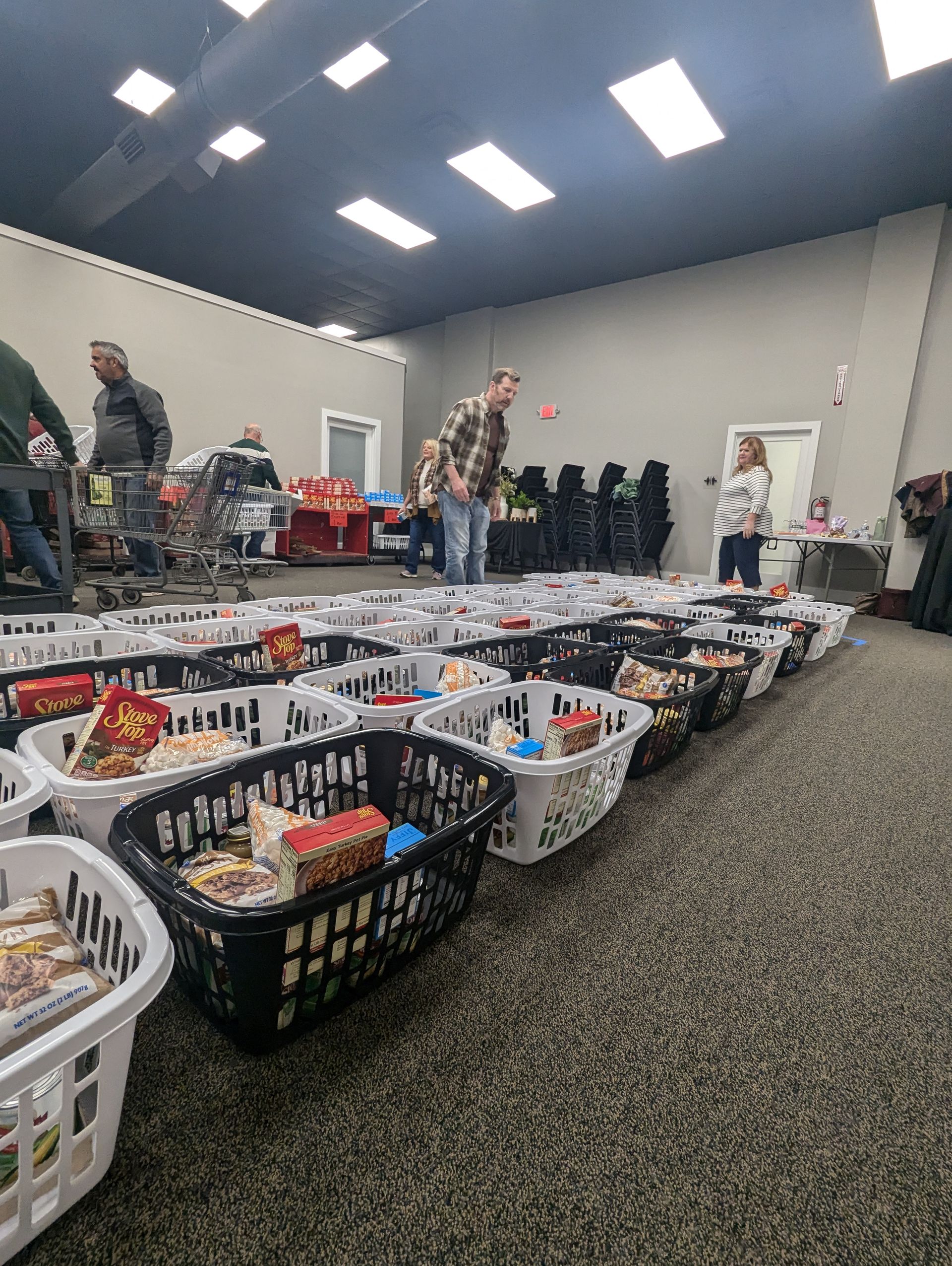 Over 300 families picked up baskets with a turkey and all the ingredients for a Thanksgiving meal. Dozens of individuals and businesses in the area made this event possible!