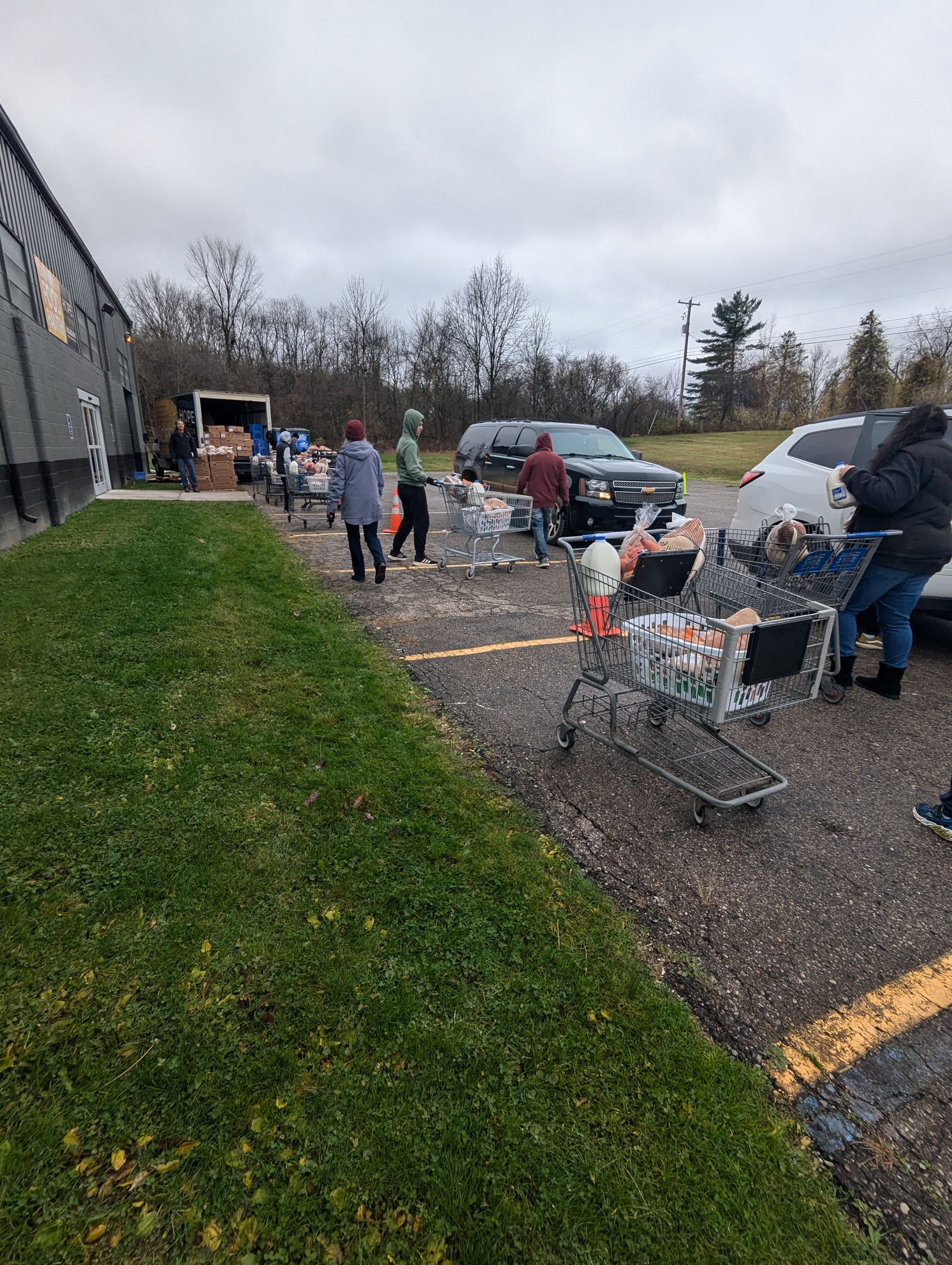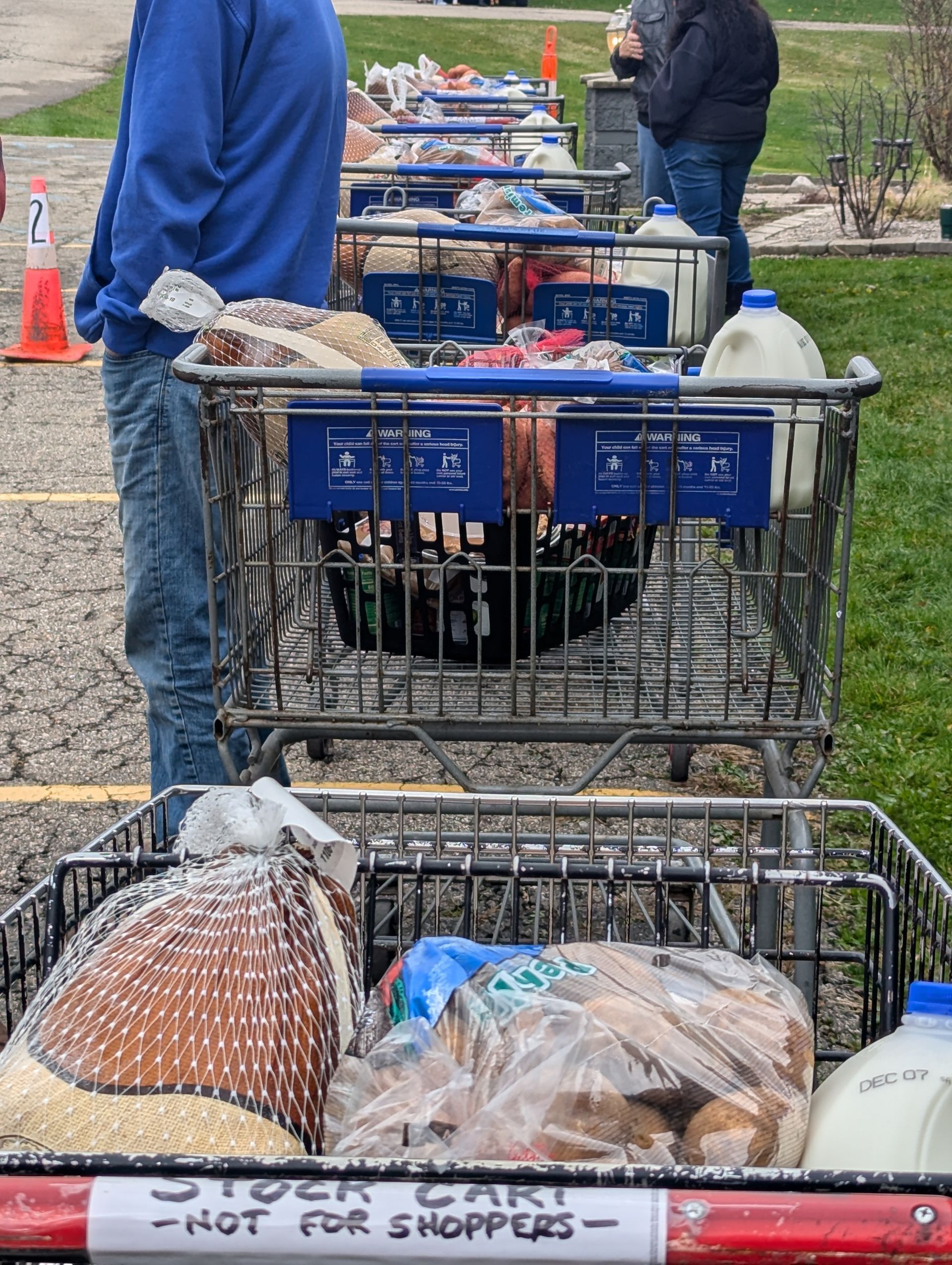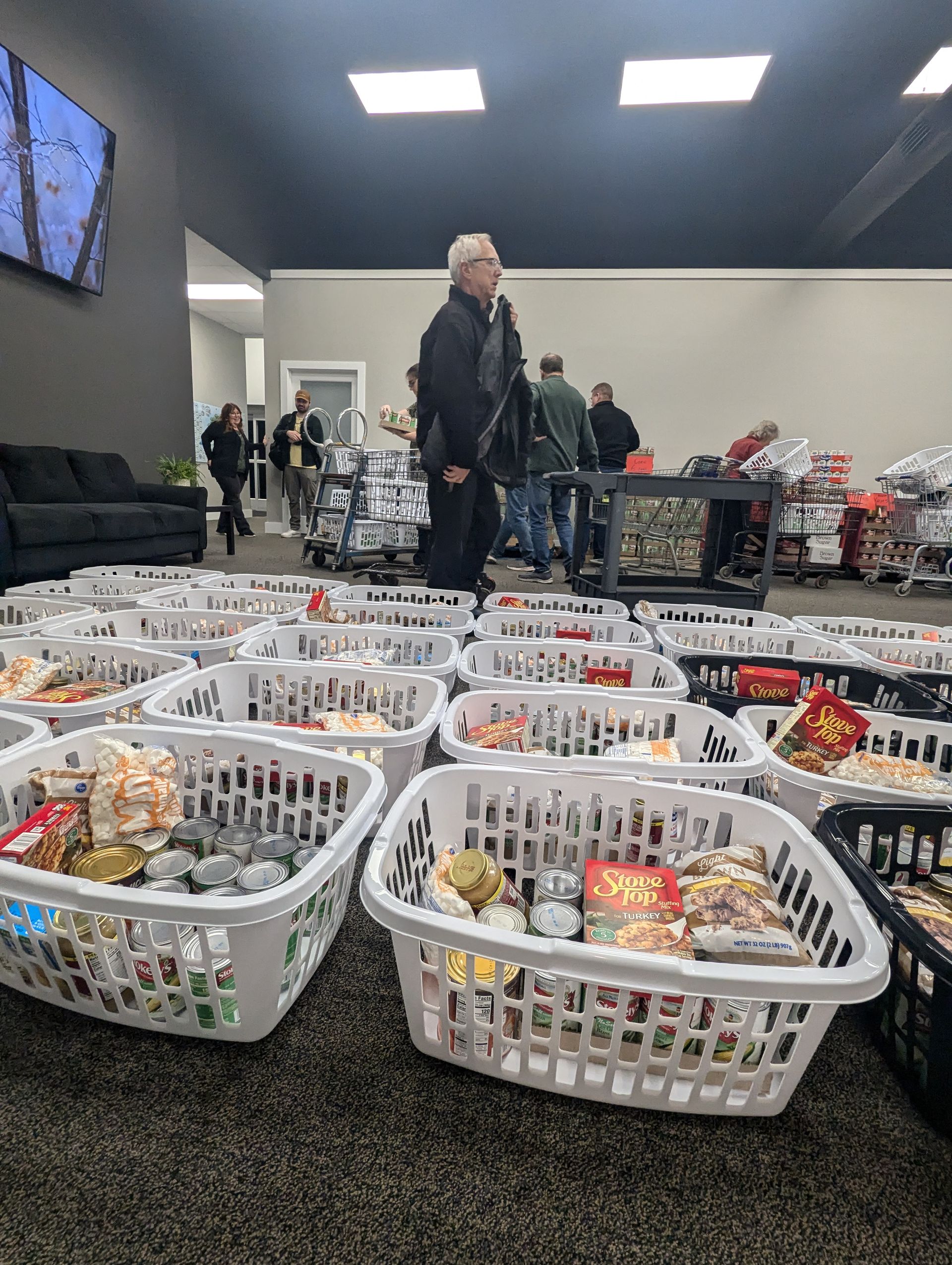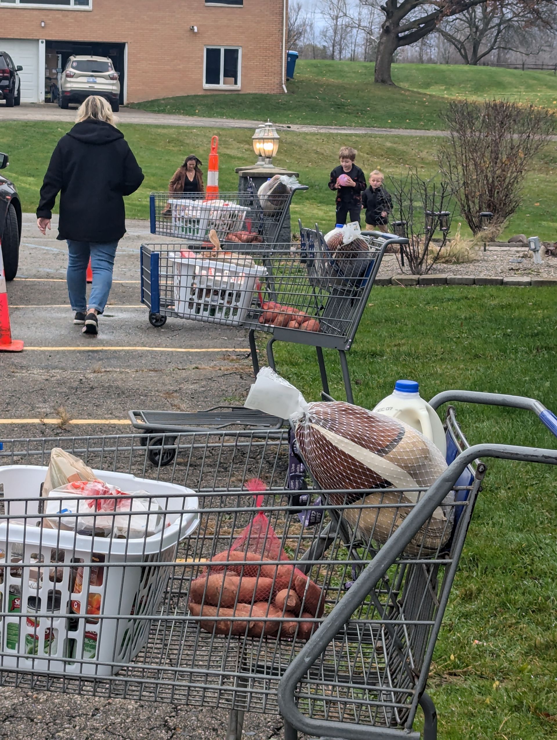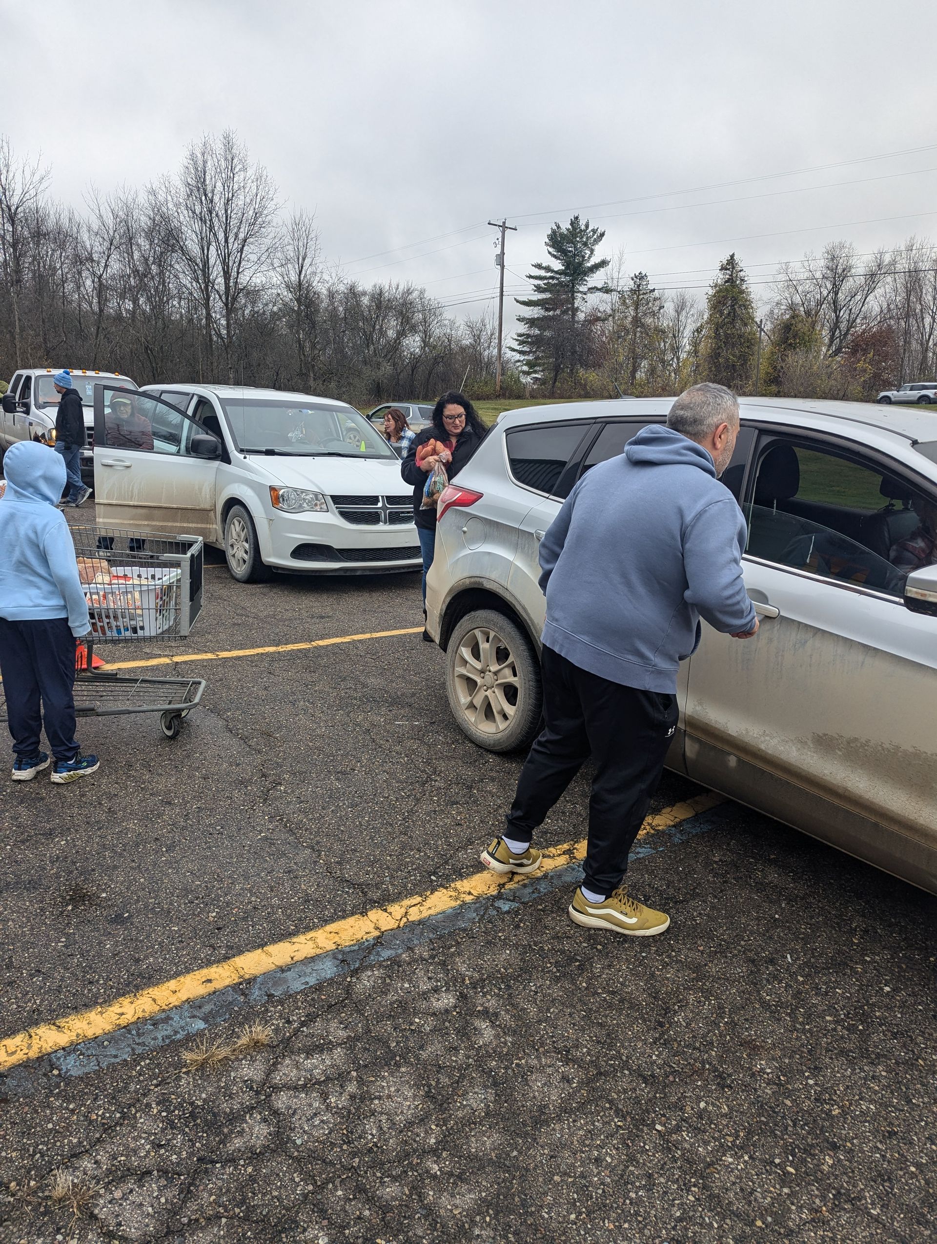Over 300 families picked up baskets with a turkey and all the ingredients for a Thanksgiving meal. Dozens of individuals and businesses in the area made this event possible!