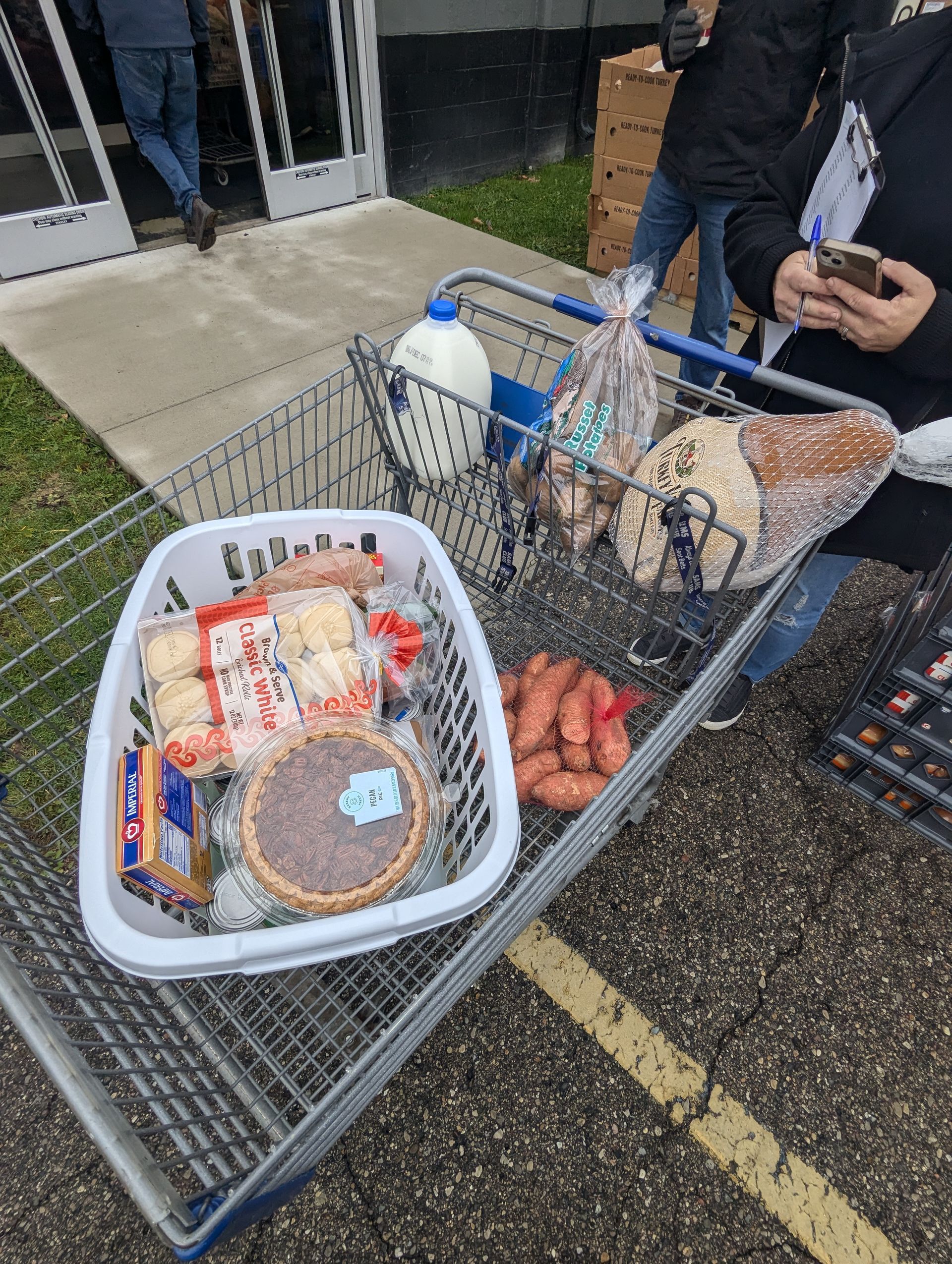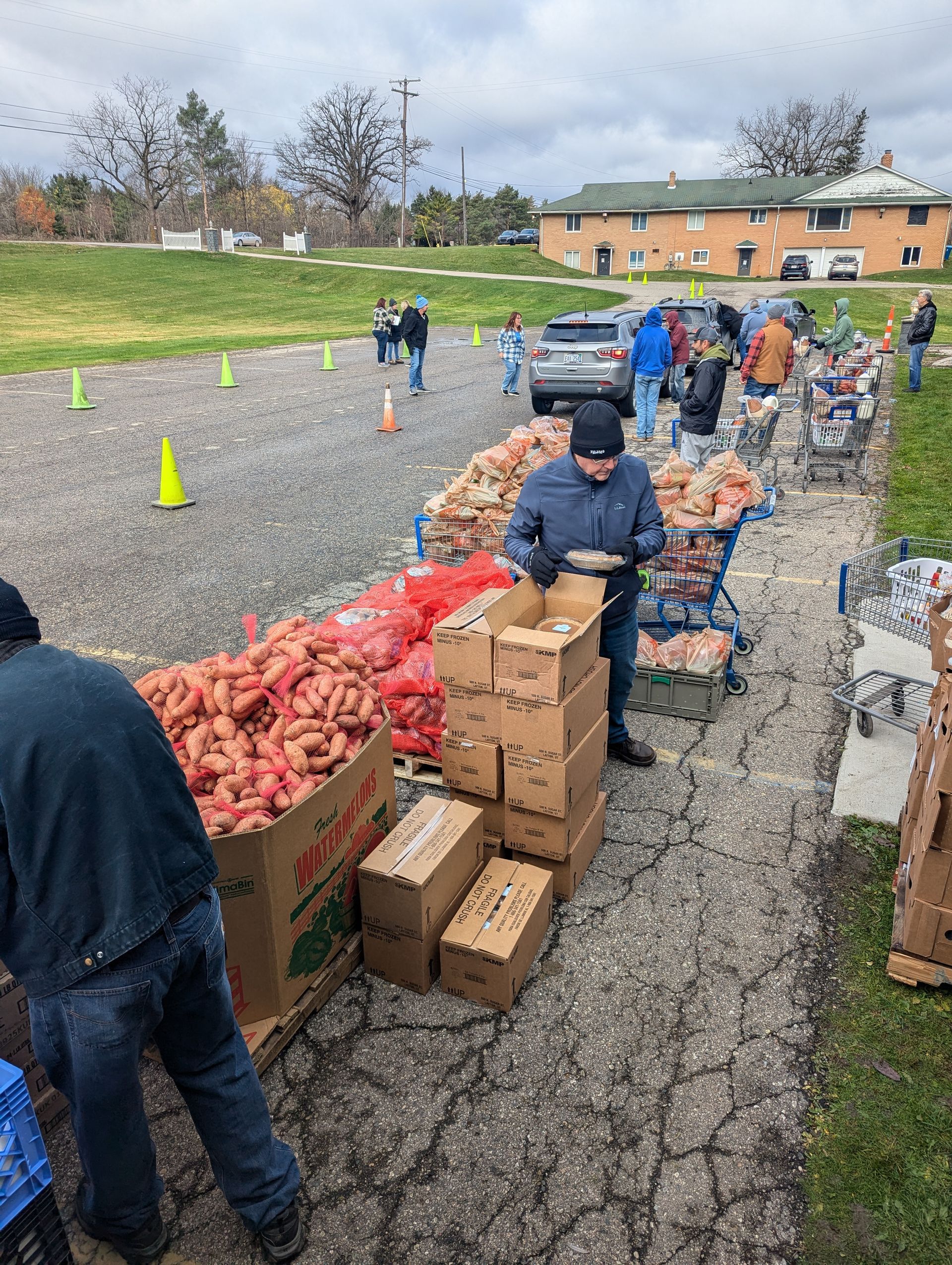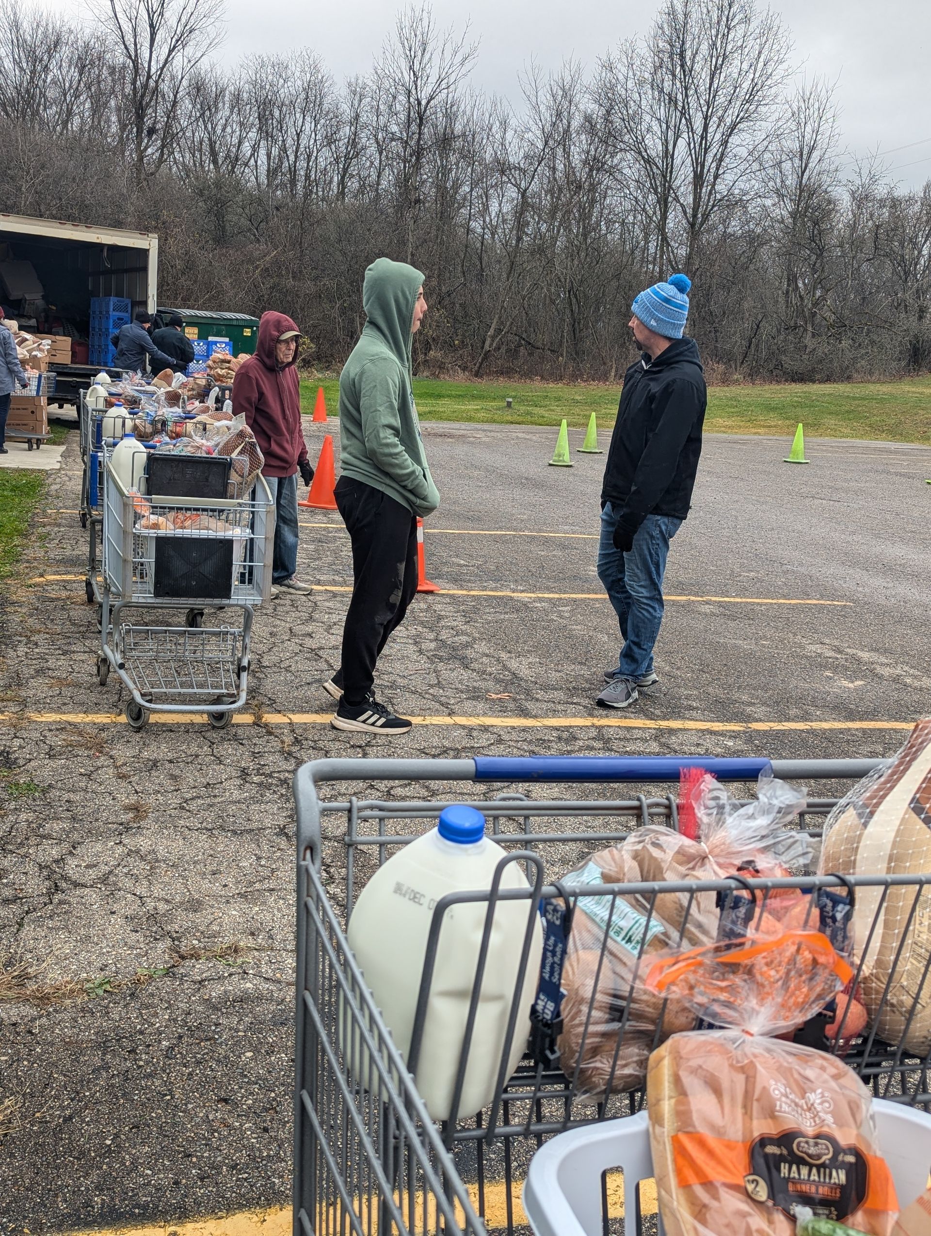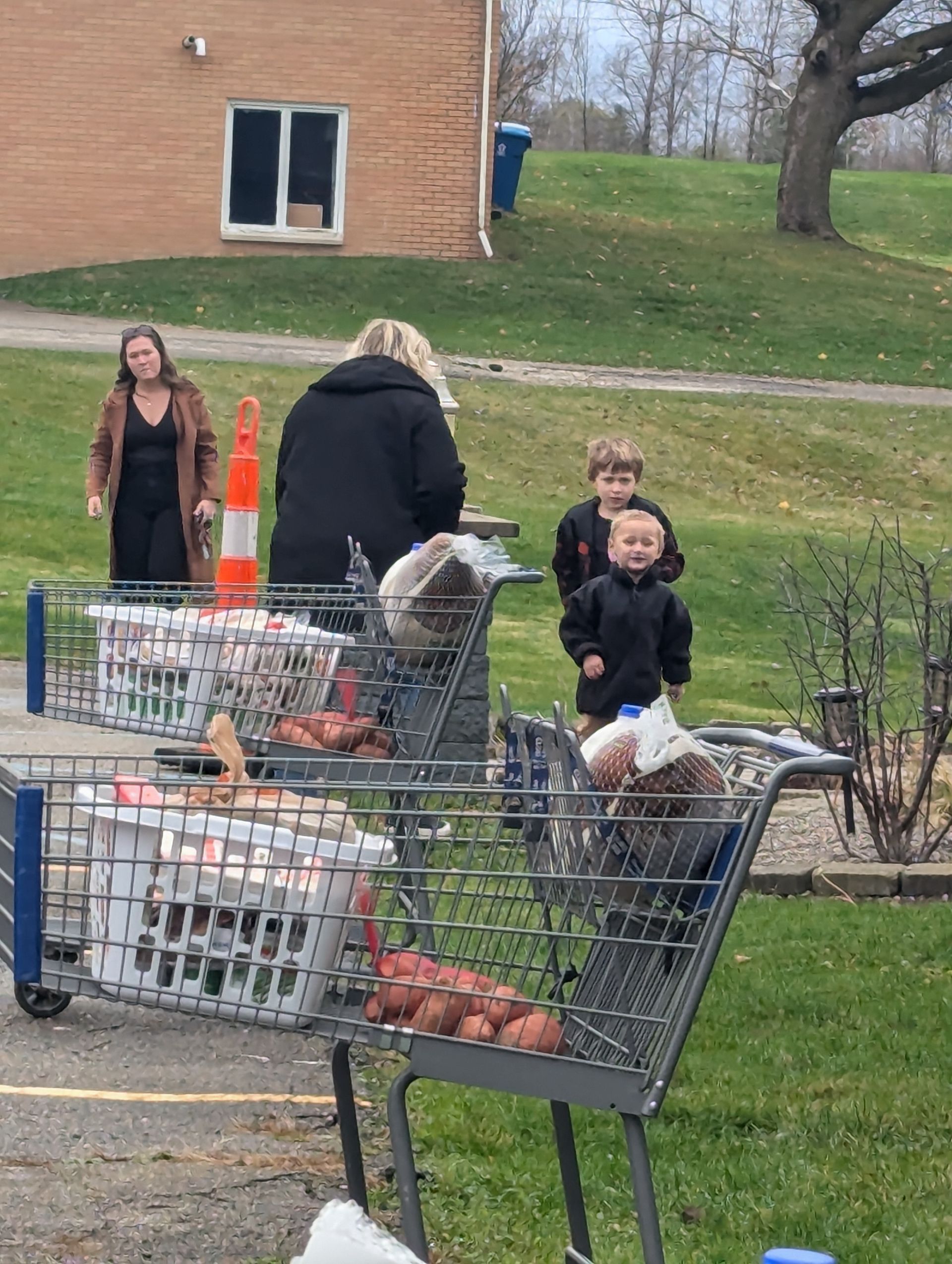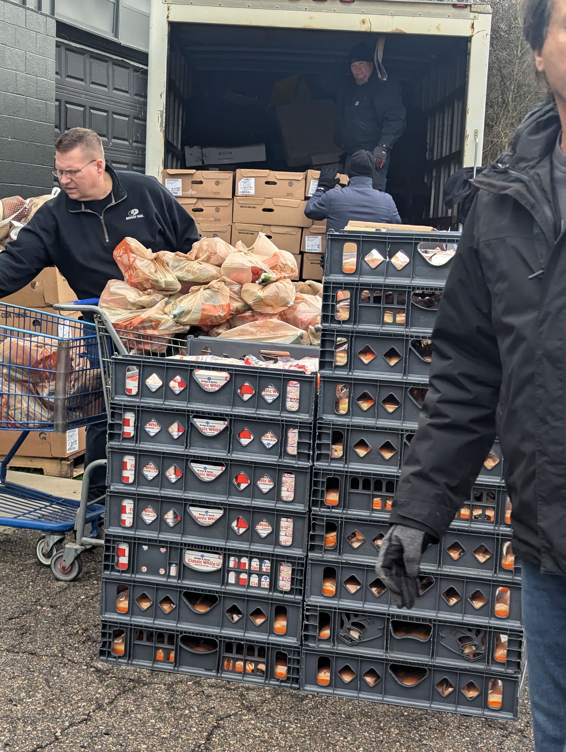 Over 300 families picked up baskets with a turkey and all the ingredients for a Thanksgiving meal. Dozens of individuals and businesses in the area made this event possible!