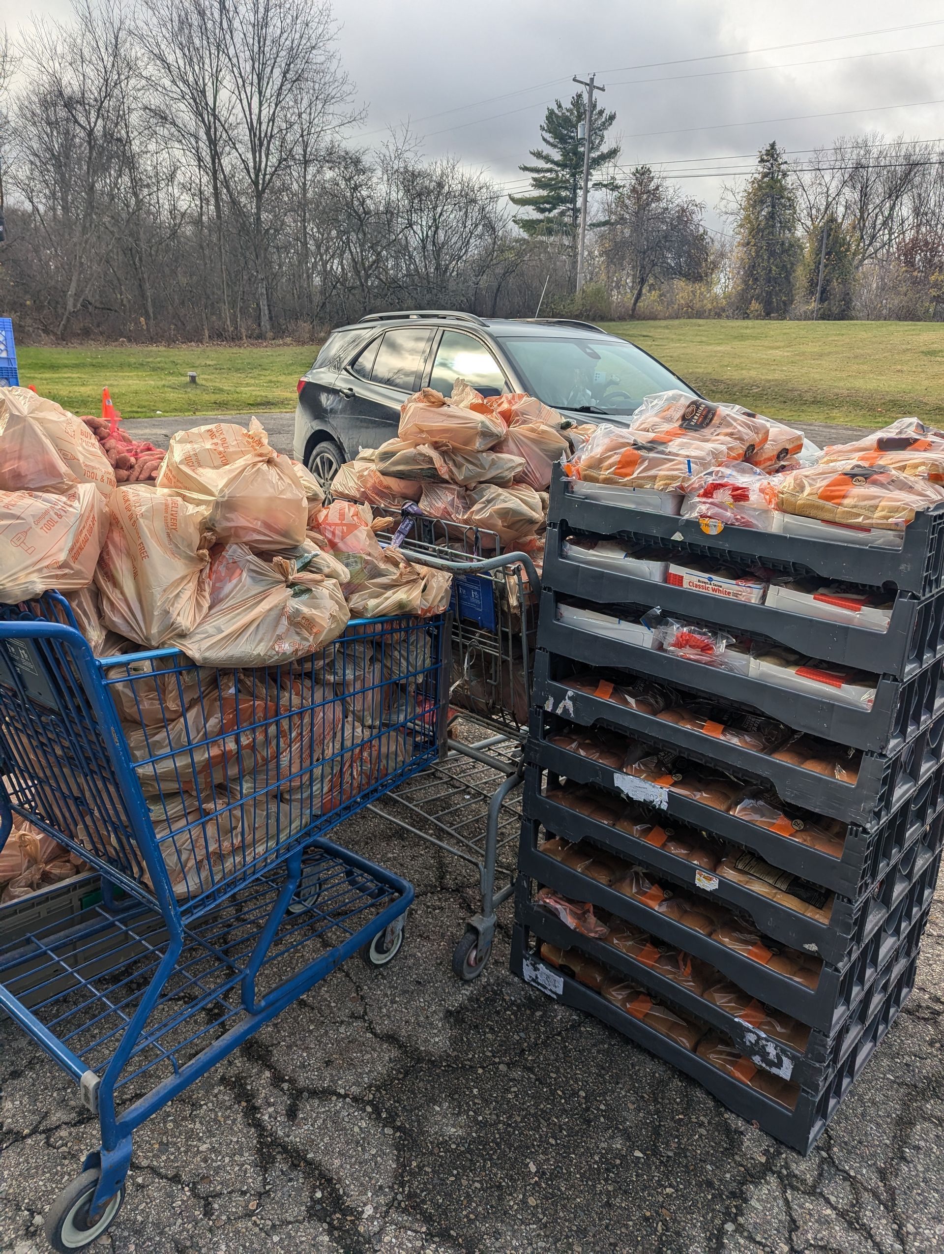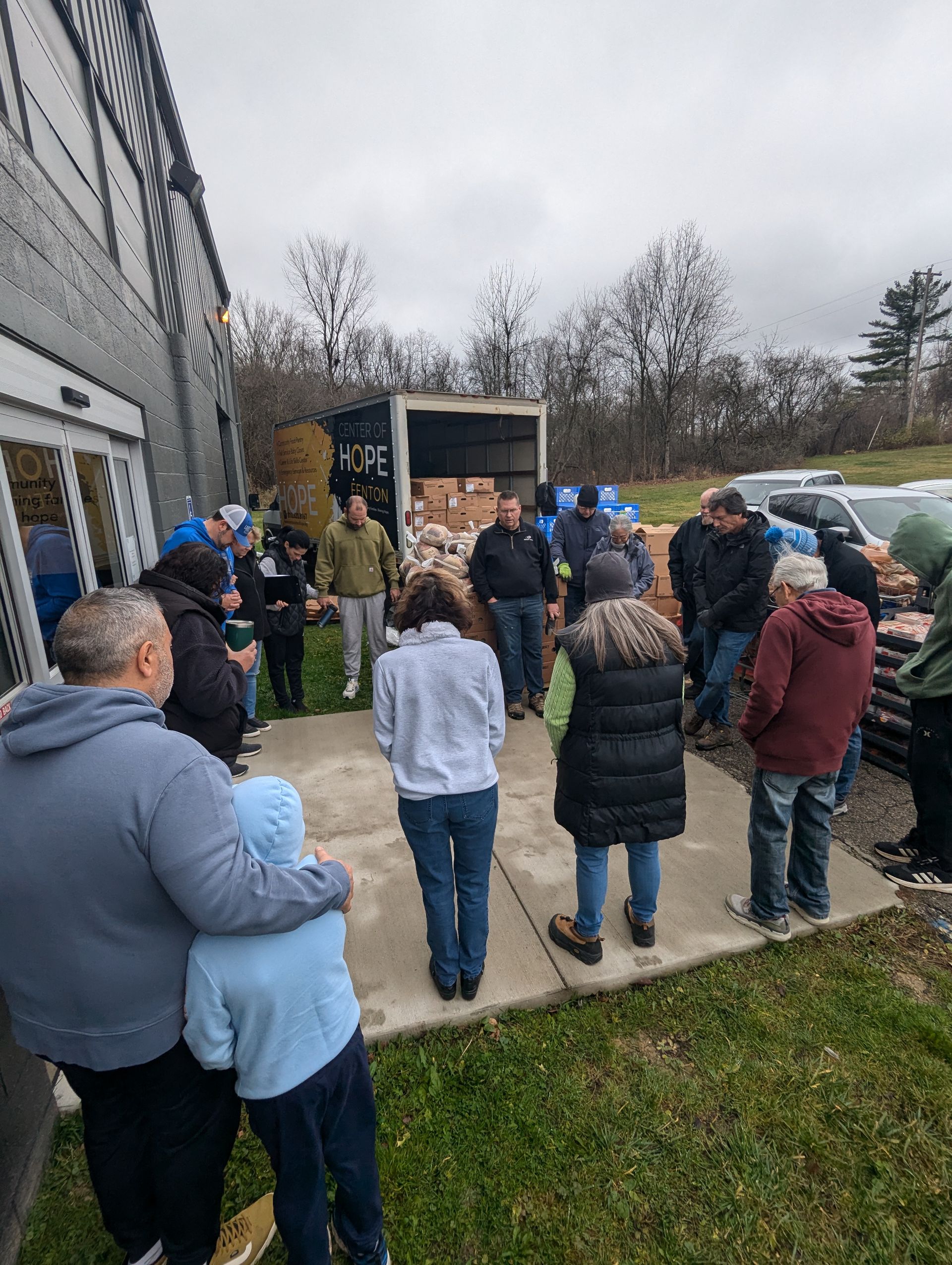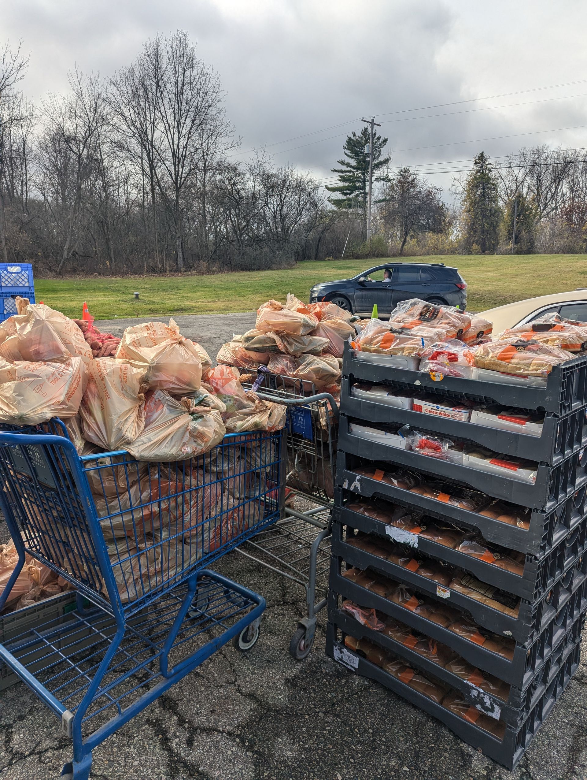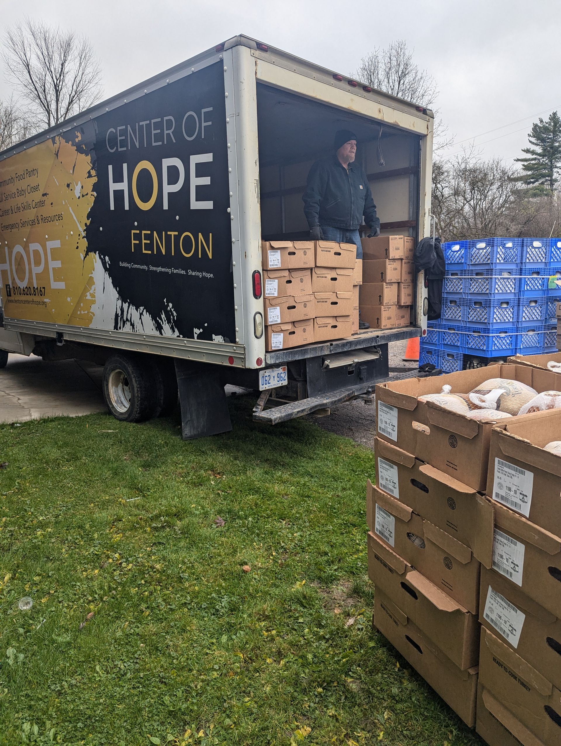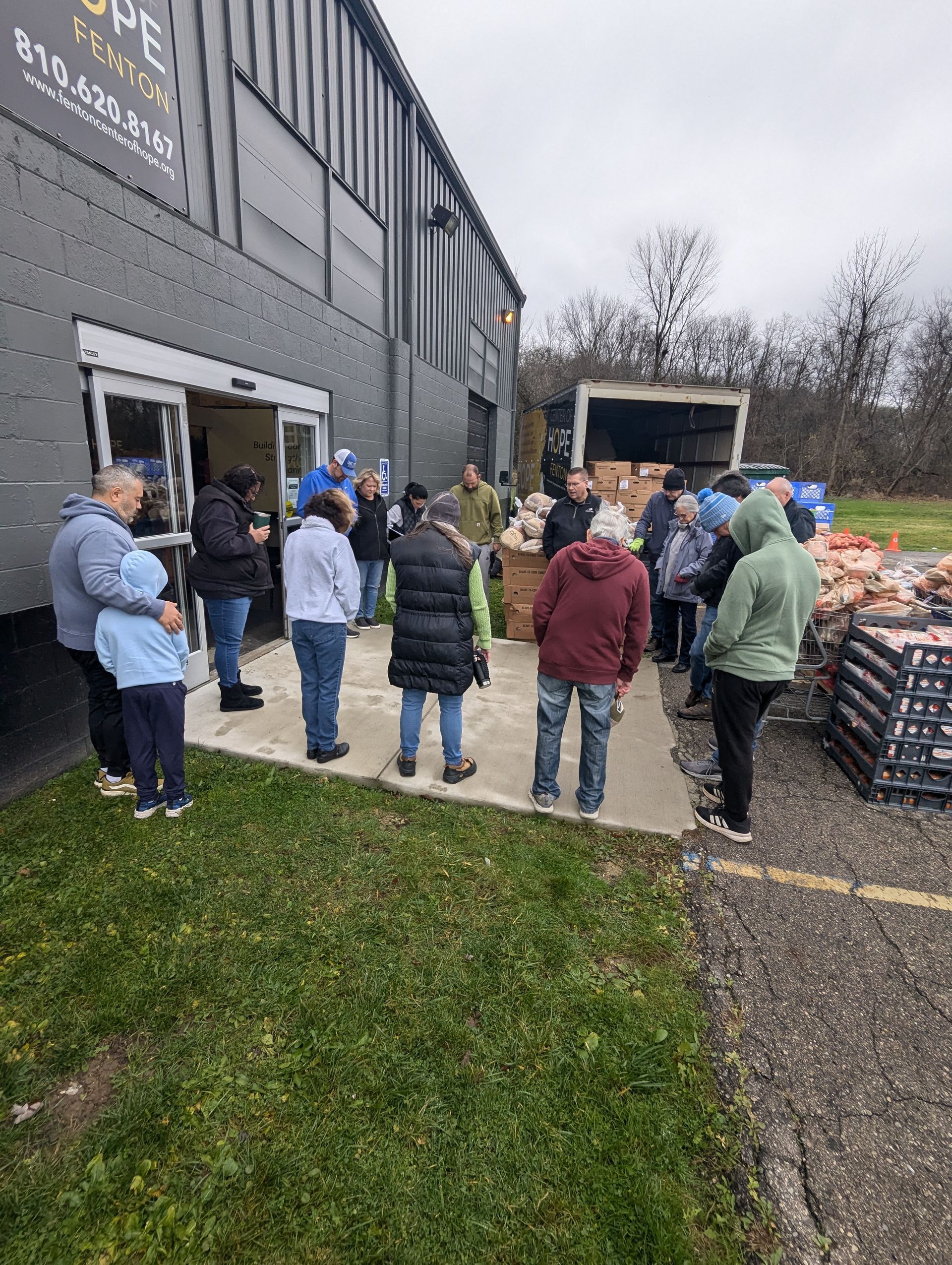 Over 300 families picked up baskets with a turkey and all the ingredients for a Thanksgiving meal. Dozens of individuals and businesses in the area made this event possible!