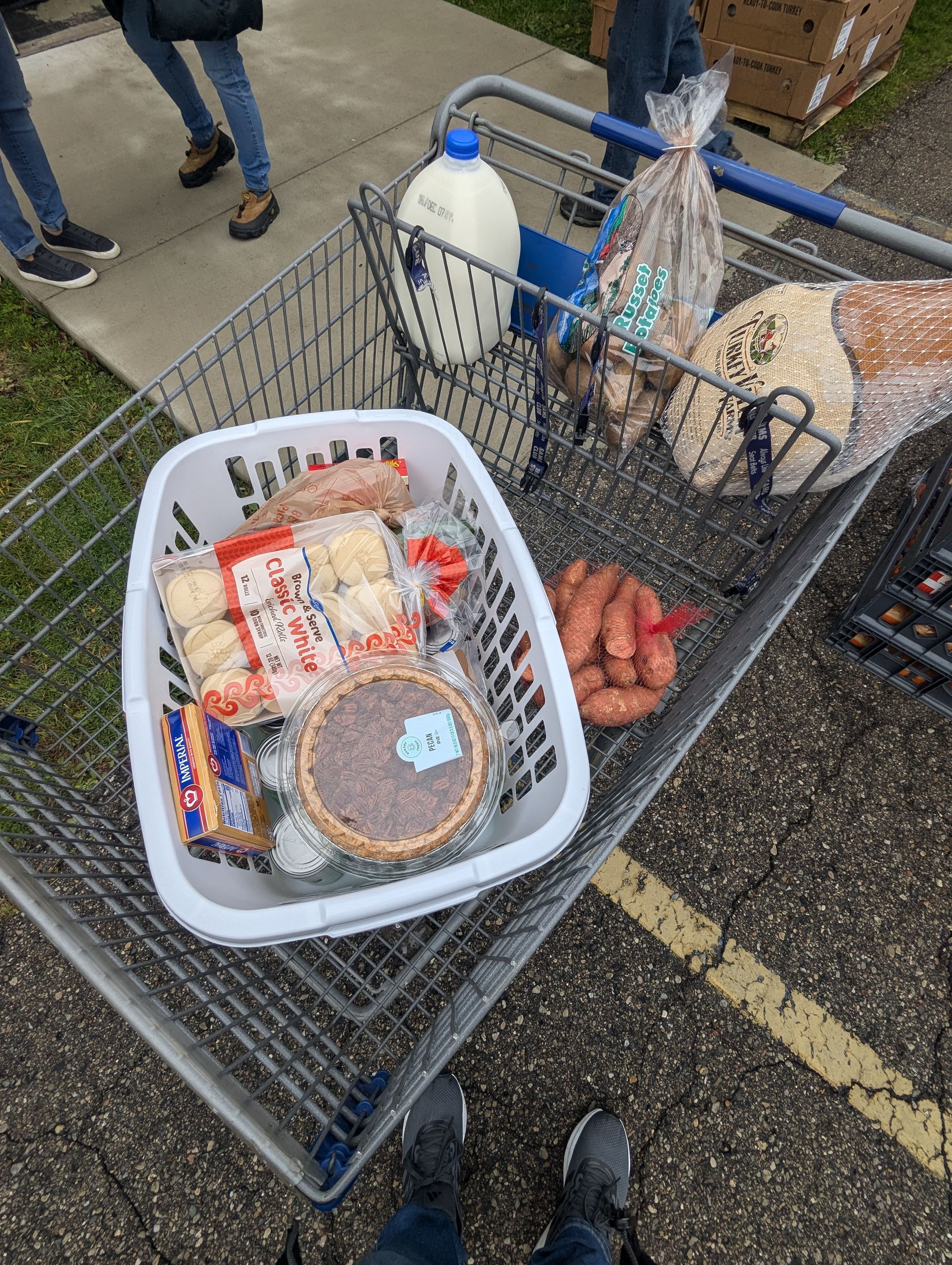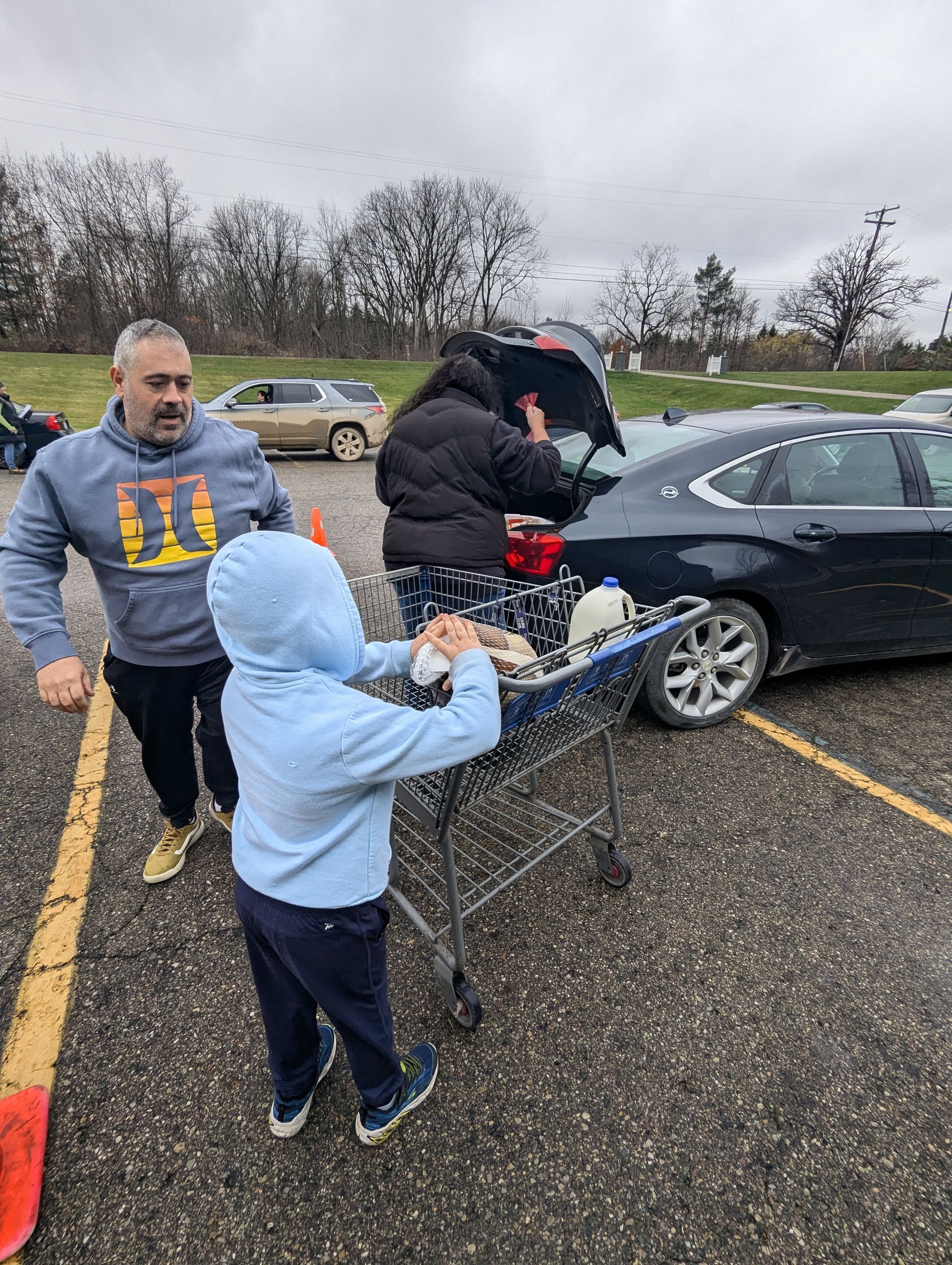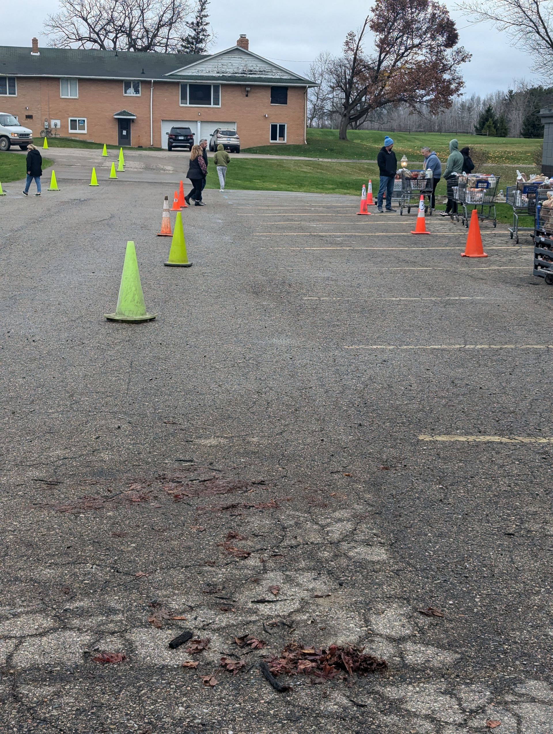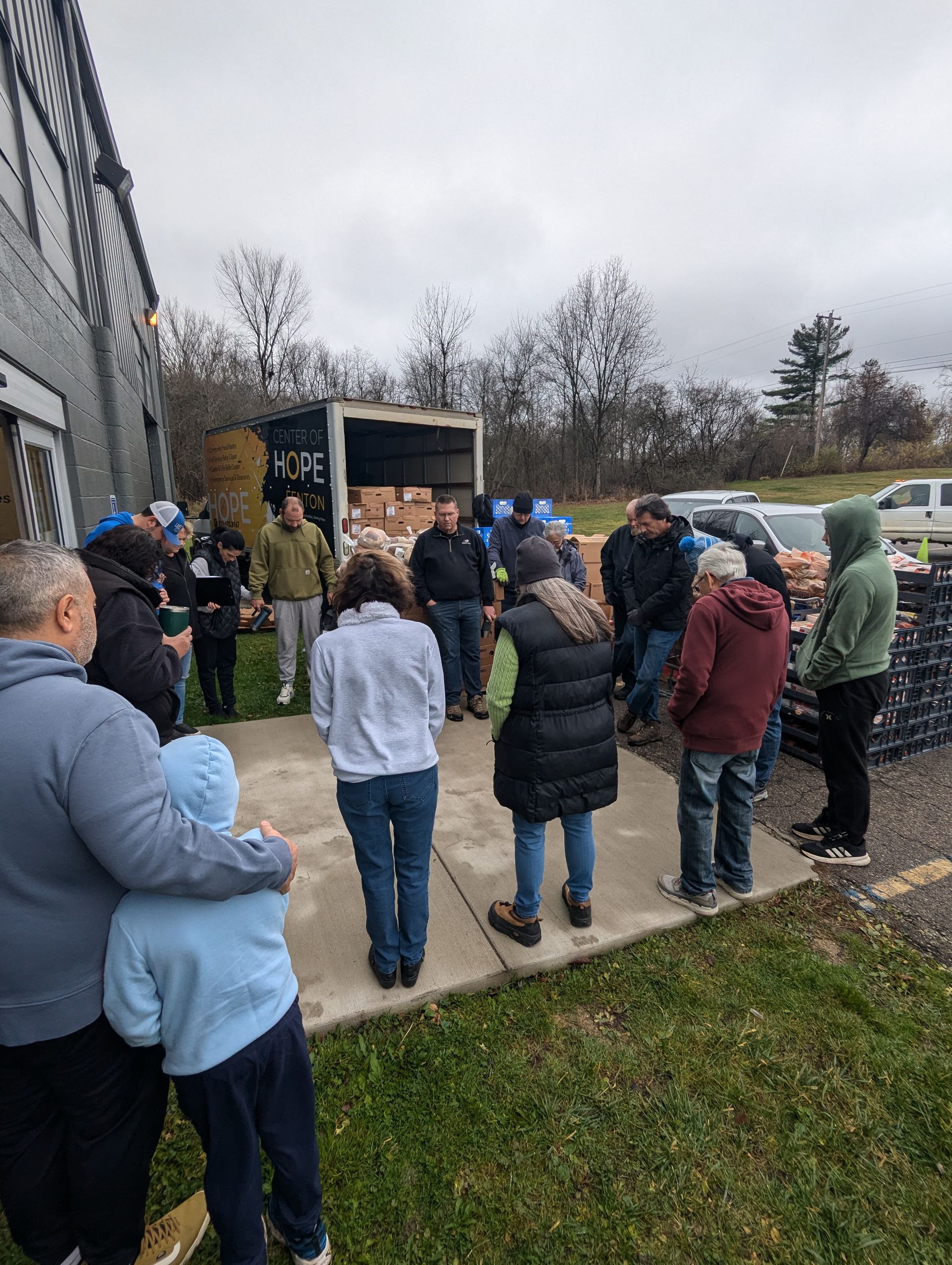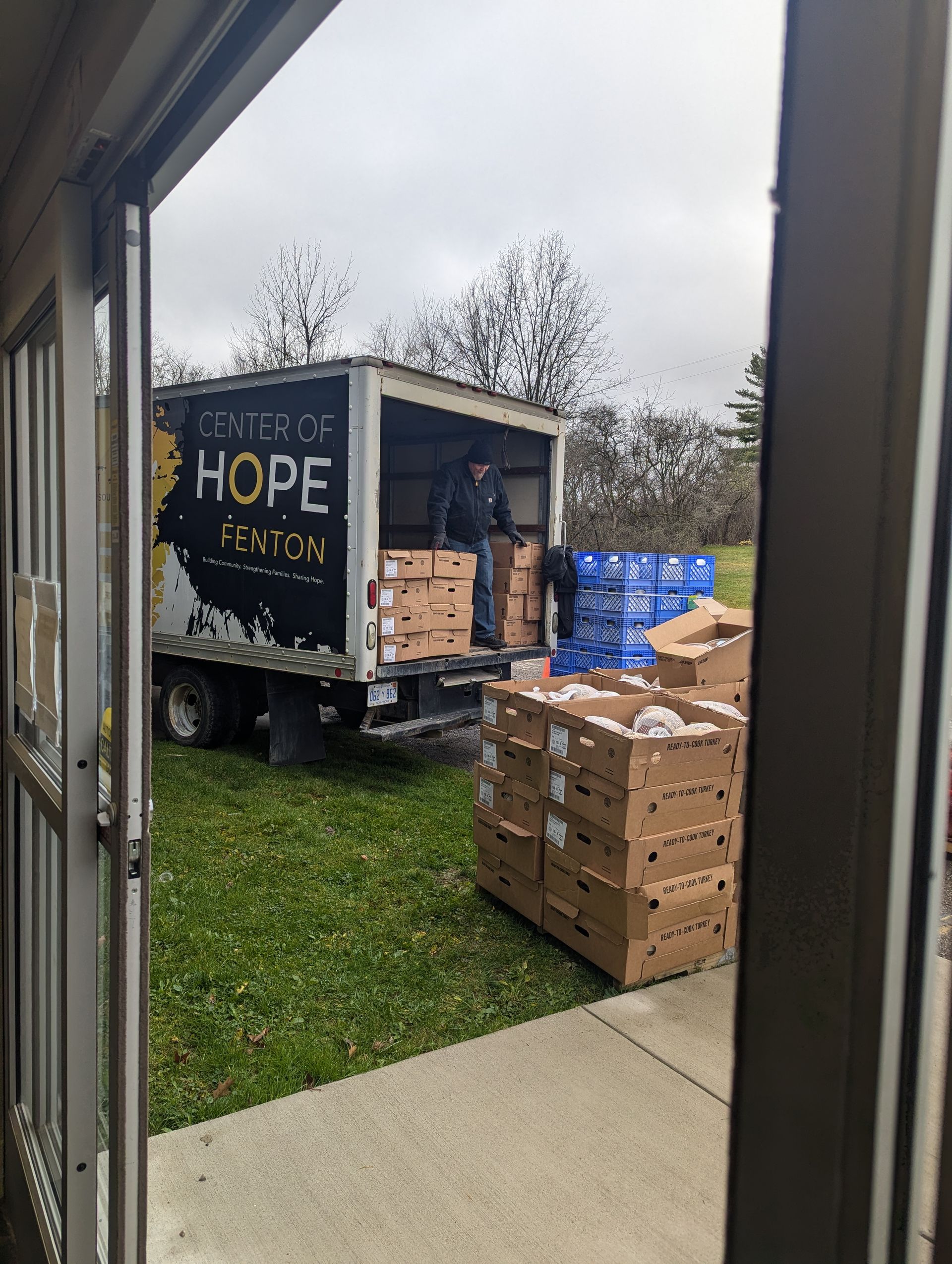 Over 300 families picked up baskets with a turkey and all the ingredients for a Thanksgiving meal. Dozens of individuals and businesses in the area made this event possible!