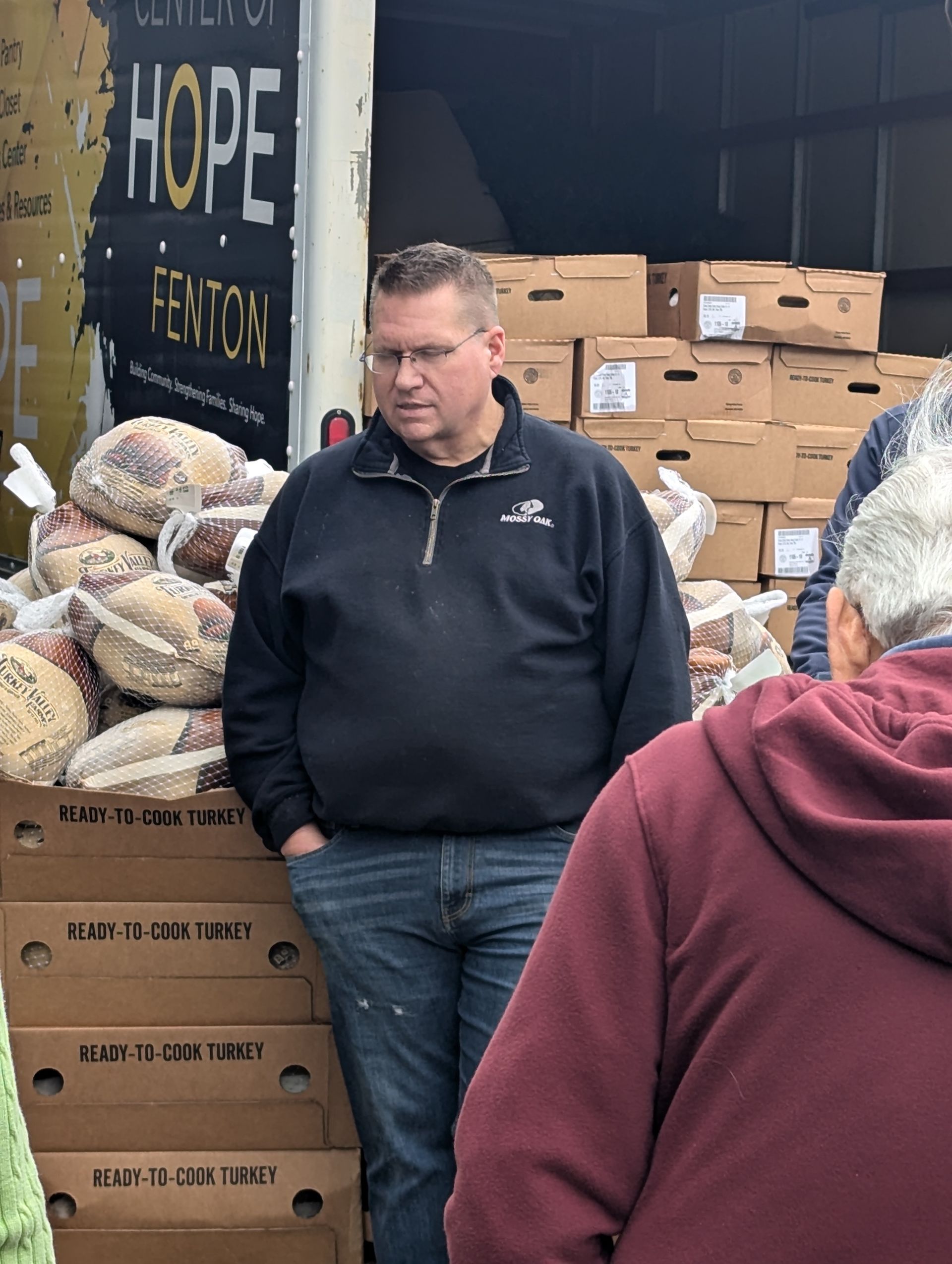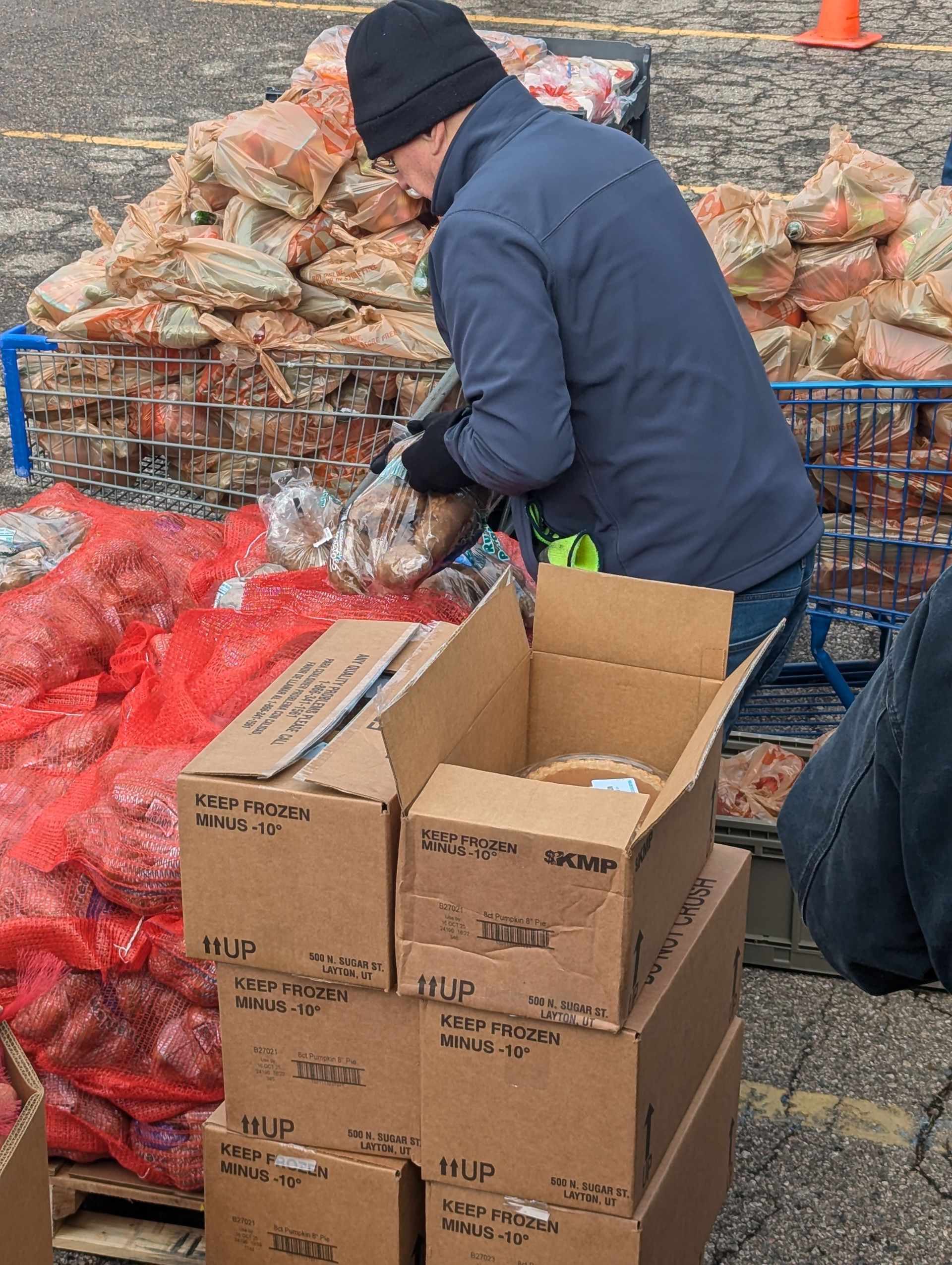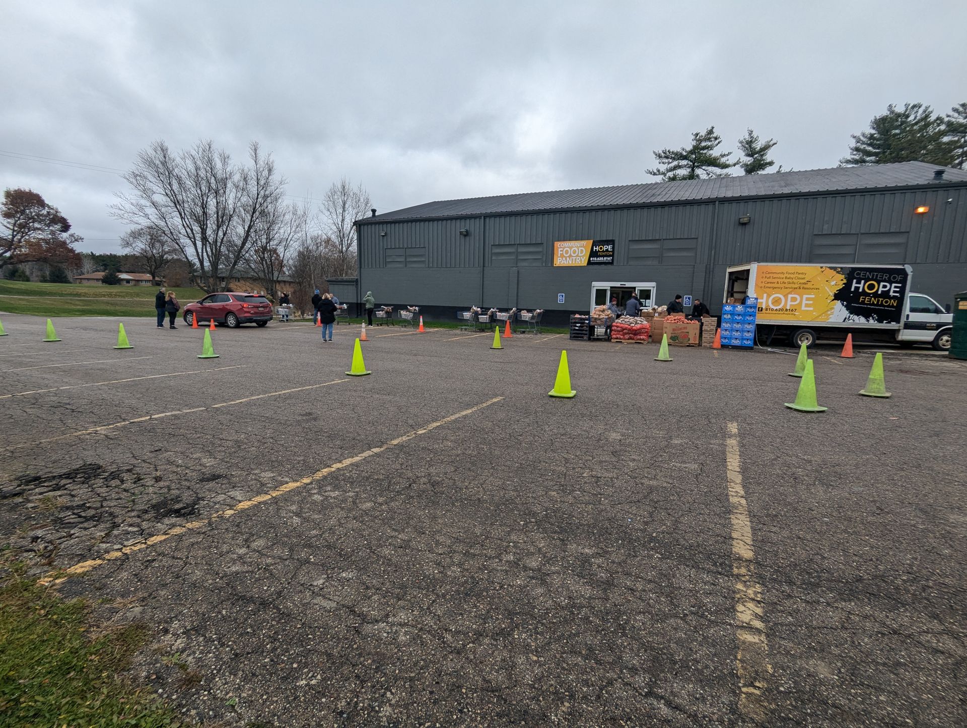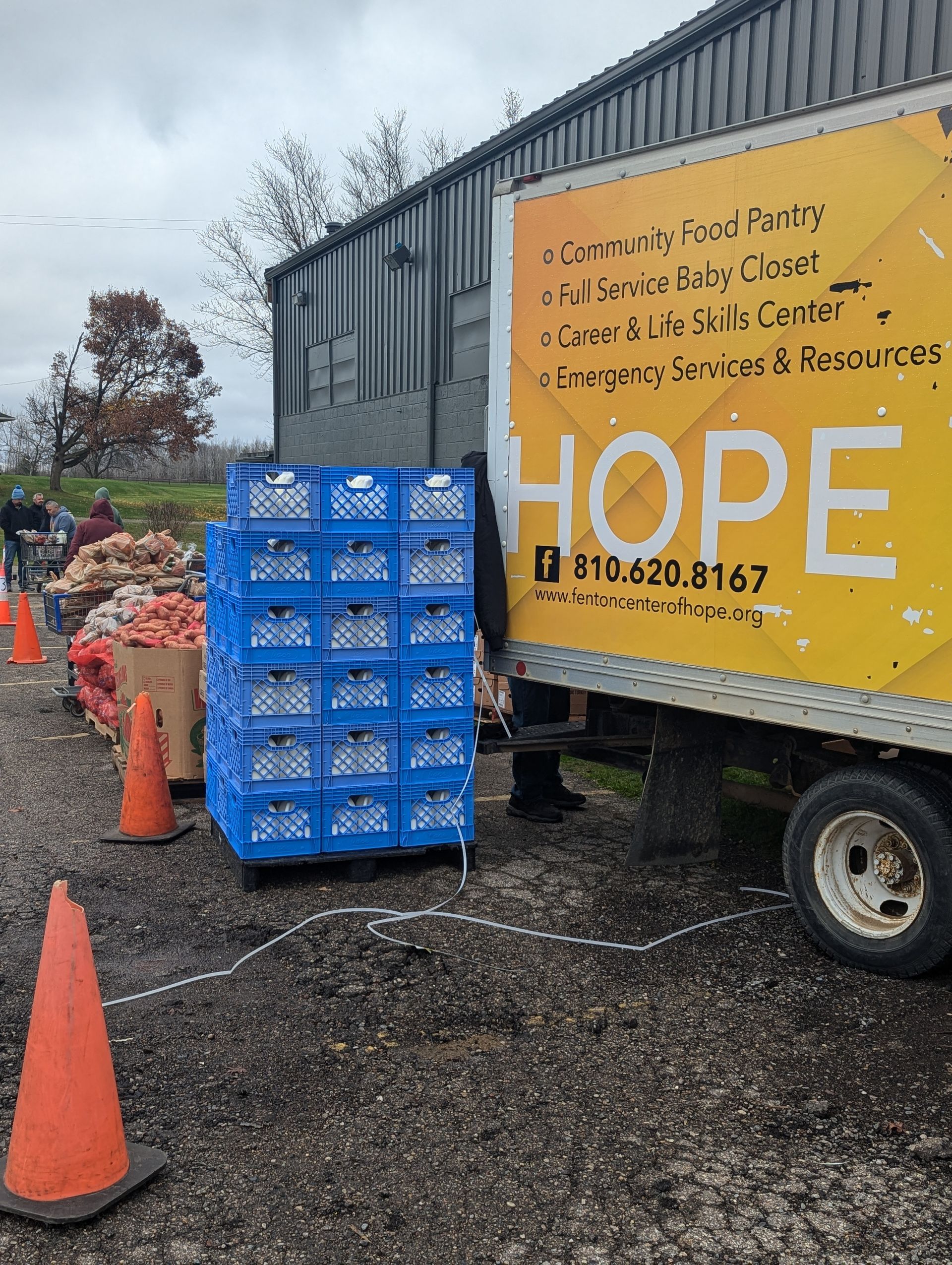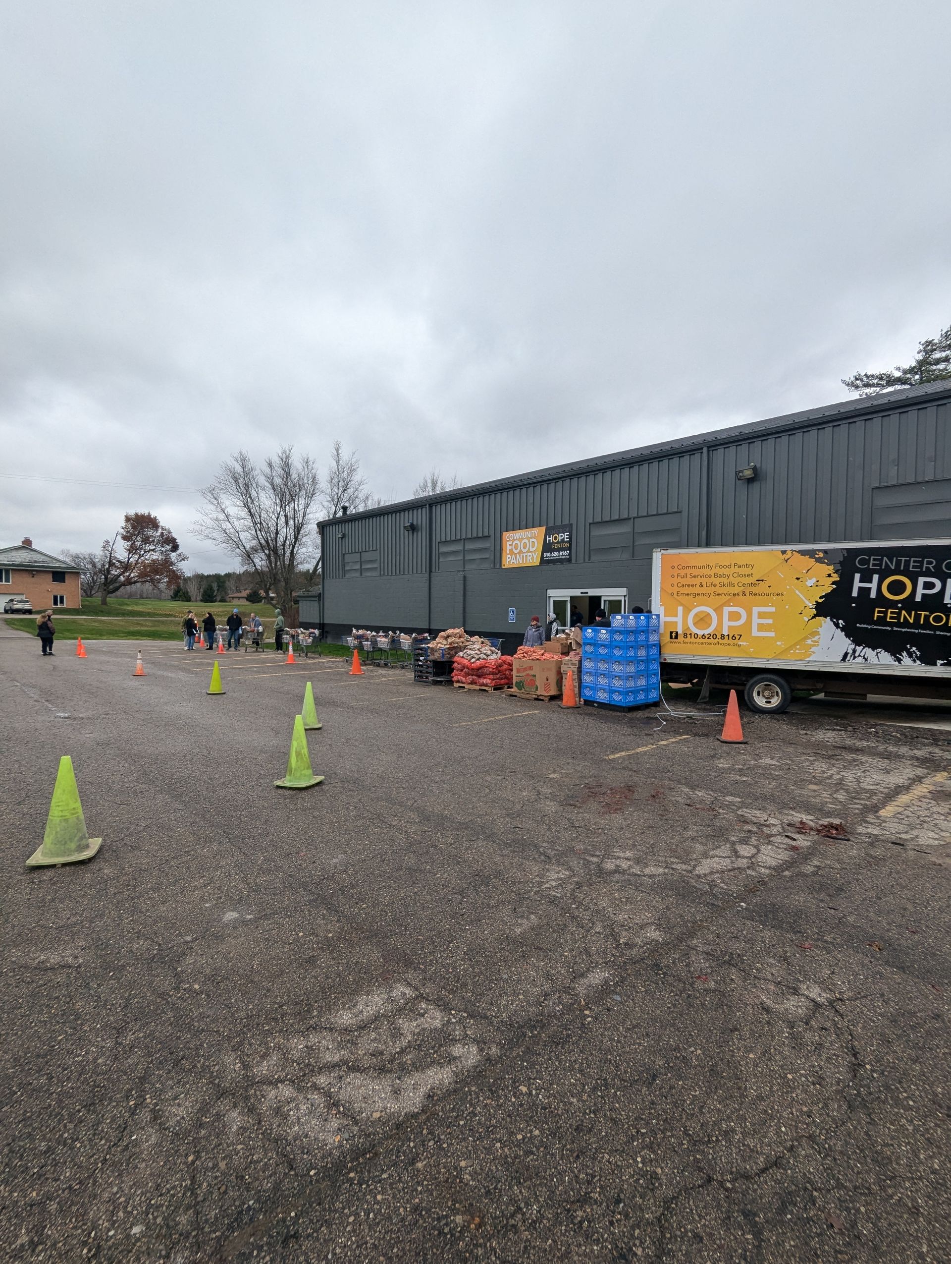 Over 300 families picked up baskets with a turkey and all the ingredients for a Thanksgiving meal. Dozens of individuals and businesses in the area made this event possible!