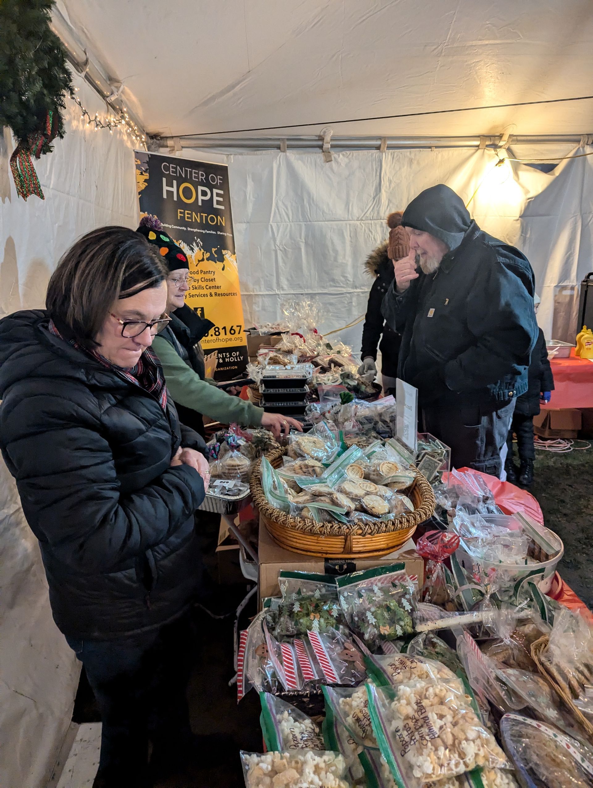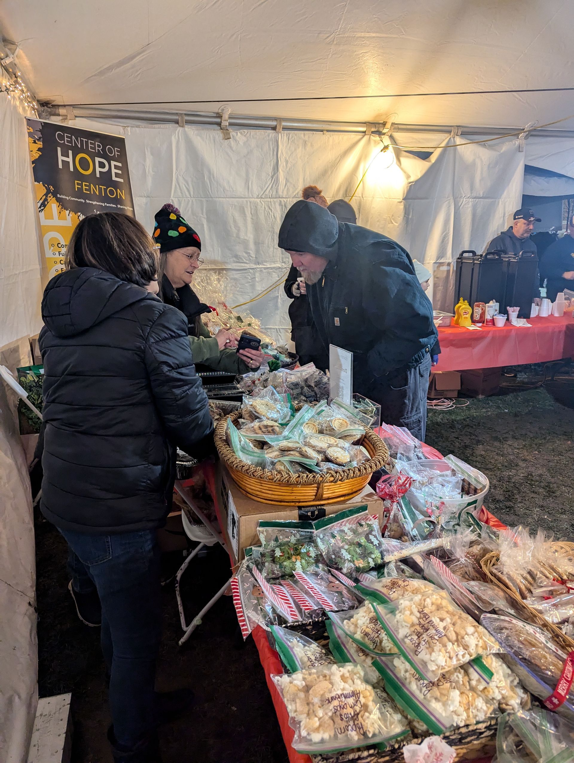 We were blessed to have a spot in the food tent at Fenton's Jinglefest where we offered cookies and baked gods for a donation. We met lots of great people, raised funds, and had a fun time!